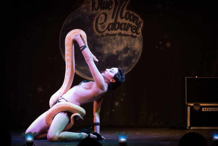 Optioneel kan deze act afgesloten worden met een douche in een vintage badkuip of een dans met levende slang.
