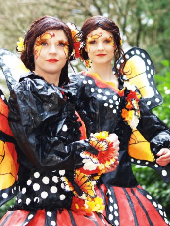 Op hun hoge stelten bewegen ze tussen het publiek die kunnen geniet van hun elegantie…