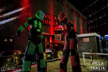 De Cyber Robots zorgen voor een vrolijke ontvangst act bij de entree en kunnen ingezet worden als een meet and Greet act.
