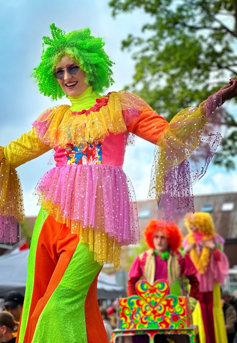 Met hun torenhoge stelten, bedekt met glinstering domineren onze steltenlopers de dansvloer als ware discodiva’s. Ze zweven elegant door de menigte, verspreiden energie en laten iedereen meebewegen op de funky beats.