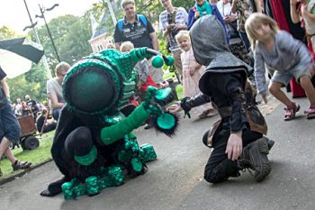 Insectiparadi, ja, wat zijn het eigenlijk. Aliens? Insecten? Een vreemd volkje, dat is zeker. Heel langzaam bewegen ze zich voort, met hun vreemde voeten. Vergezeld door het vervreemdende geluid van een soundscape, speciaal gemaakt voor deze act door Wendel Kos van SMF Studio’s.