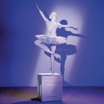 De Prima Ballerina staat bewegingsloos op haar sokkel.