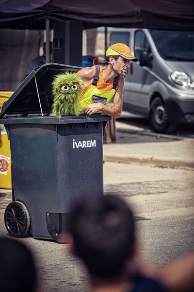Op een zeer ontwapenende manier weet deze artiest het thema afval, sorteren en recycleren te verwerken in een hilarische straattheater act, ook geschikt voor de allerkleinsten onder ons.