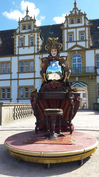 Een mooie, sprookjesachtige gedaante met een tafel en stoeletje beweegt in het rond…