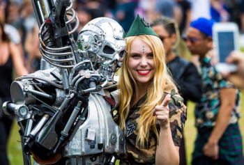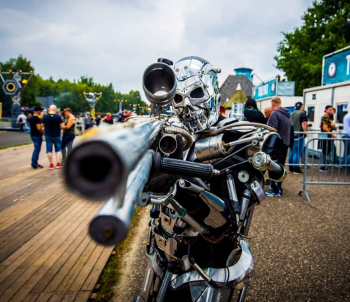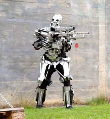 Deze robot is ge-upgrade en is voorzien met ledverlichting en kan ook met laser en elektronische confetti shooter worden voorzien.