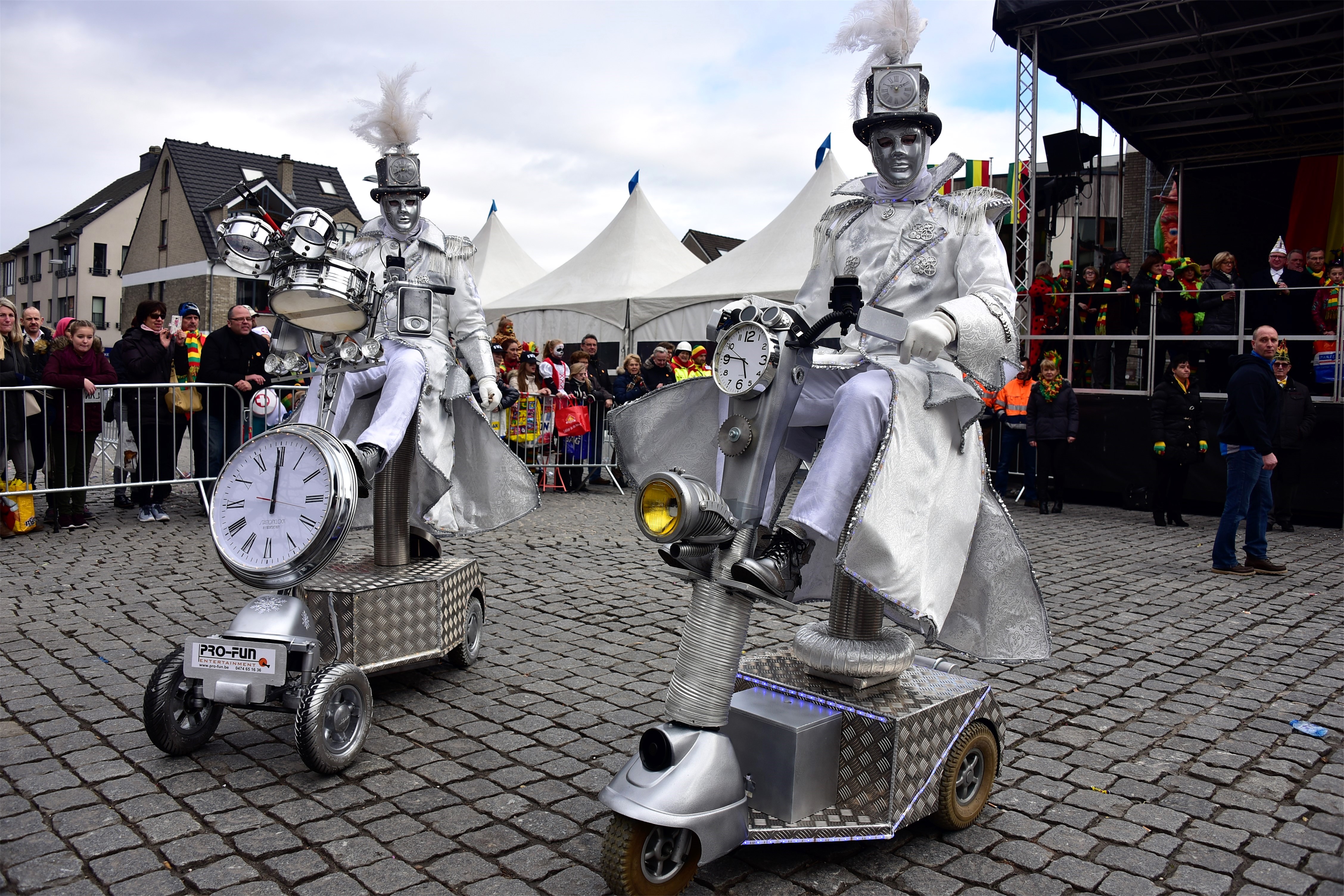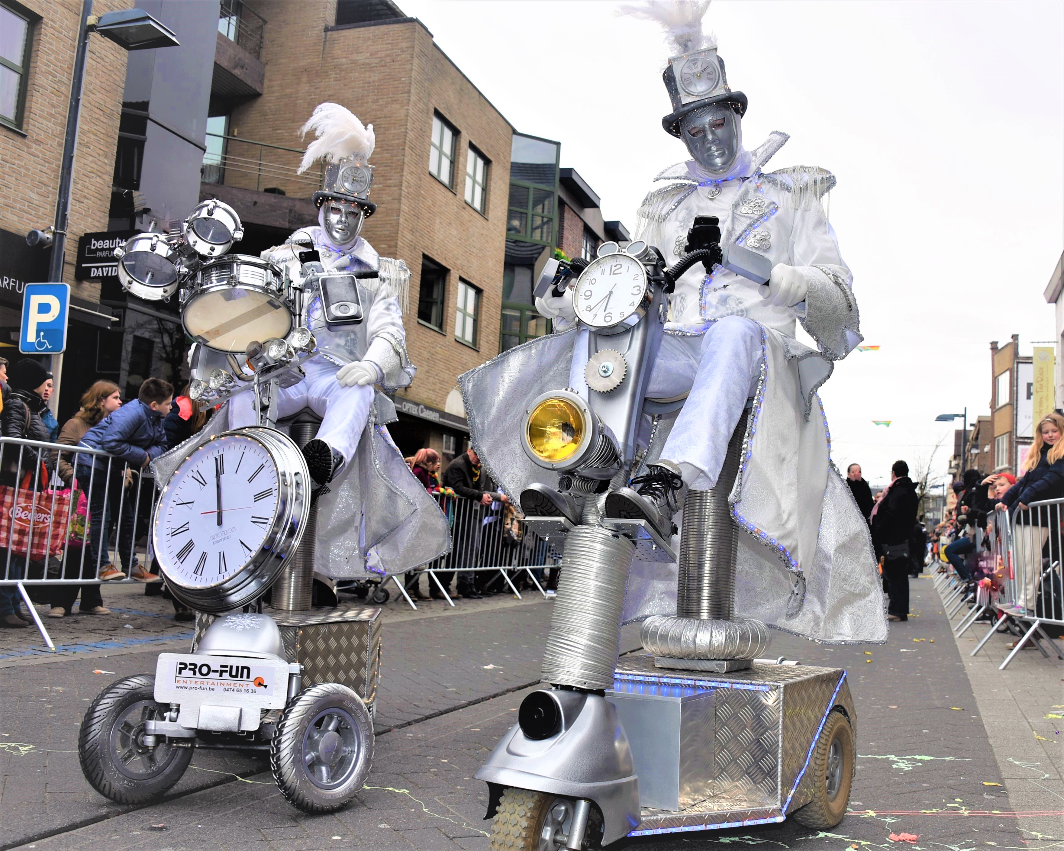 De act is zeker inzetbaar tijdens de avonduren daar het mobiel en de kledij zijn uitgerust met LED-verlichting. Deze verlichting kan elke kleur aannemen. De bijpassende muziek die uit de boxen komt maakt alles nog mystieker…