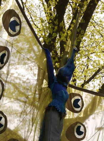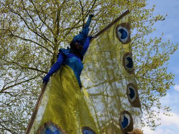 Sierlijk, trots en imponerend wandelen deze pauwen steltenlopers door het publiek.