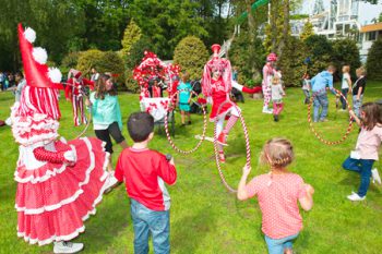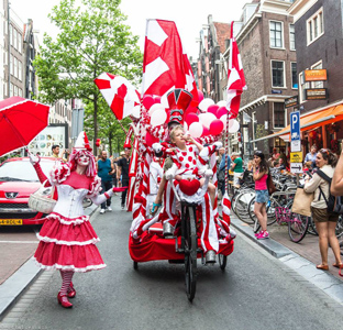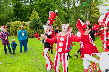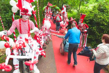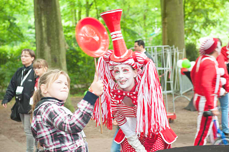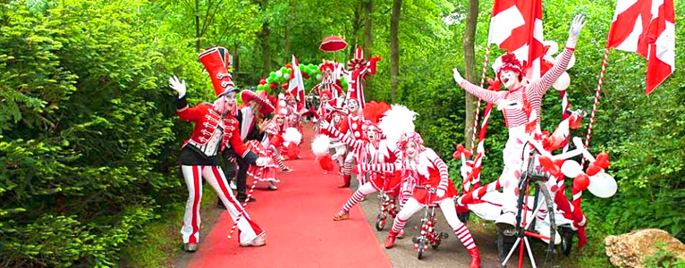 - Deze act kan als parade geboekt worden tot 16 spelers: 1 Koploopster op Lowrider, 2 Vaandeldraagsters, 2 Clowntjes op minifietsjes, 1 Jongleur op een eenwieler, 1 Clowntje op hoge fiets van 2 verdiepingen, 4 Steltloopsters, 1 Clown op driewieler, 1 Spaanse Dame met Parasol, 1 Hoepelaarster / Cheerleader, 2 Meewandelende acrobaten