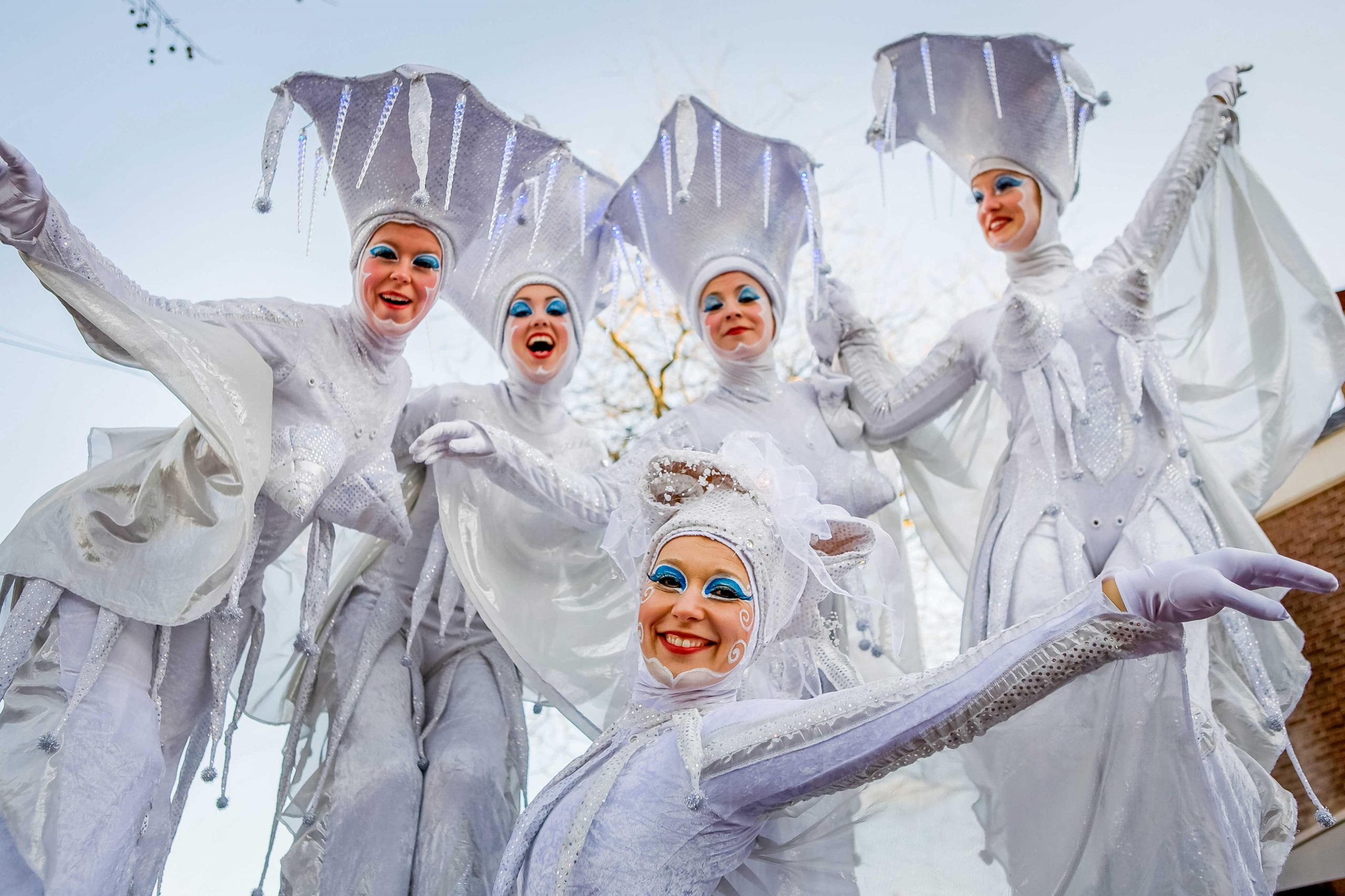 Als heldere kristallen schitteren deze ‘White Diva’s’ in het licht. IJspegels van blauw licht hangen aan hun fonkelende hoeden.